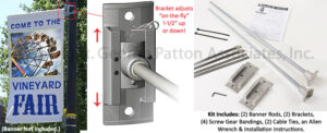 Adjustable Street Pole Brackets, Hold (2) 30″w Banners – Silver