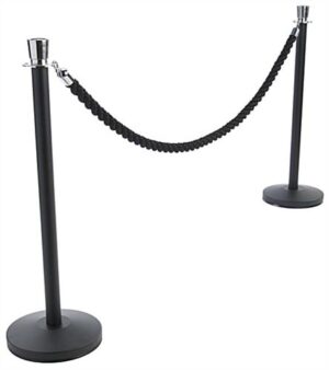 QueuePole.Deluxe Round 39″ Black Stanchion Posts with 6.5′ Braided Black Rope
