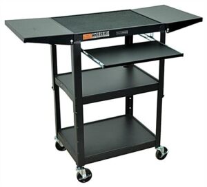 AV Cart with Side Shelves, Pull-Out Tray, Open Shelving, Adjustable Height – Black