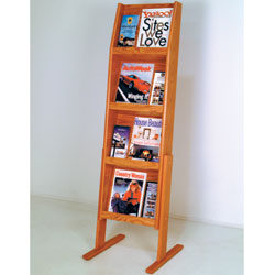 4-Tiered Literature Floor Stand, 4″/8.5″w, 8/16 Pockets – Light Oak