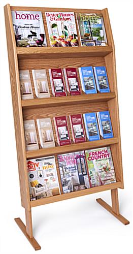 4-Tiered Literature Floor Stand, 4″/8.5″w, 12/18 Pockets – Light Oak