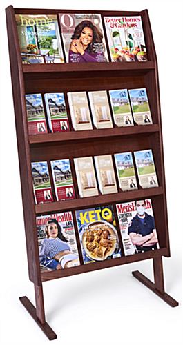 4-Tiered Literature Floor Stand, 4″/8.5″w, 12/18 Pockets – Mahogany