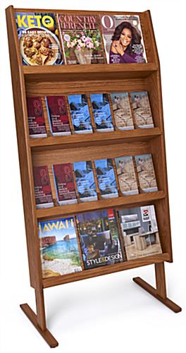 4-Tiered Literature Floor Stand, 4″/8.5″w, 8/16 Pockets – Mahogany