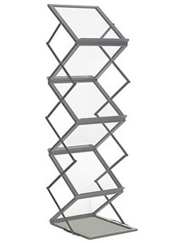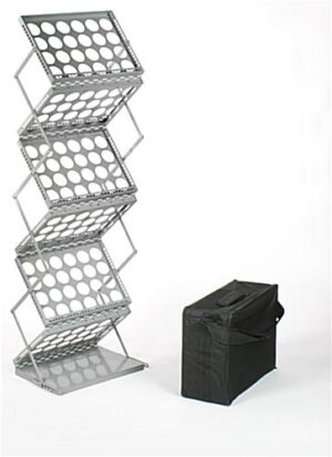 5-Pocket Portable Literature Floor Stand w/ Hard Case, Adjustable, 10″ – Silver