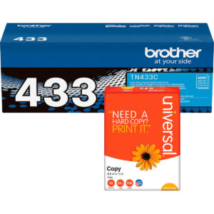 Brother TN433C Toner Cartridge, High Yield, Cyan, with Bonus Ream of Paper