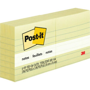 Post-it Notes, 3″ x 3″, Canary Yellow, Lined, 100 Sheets, 6 Pads