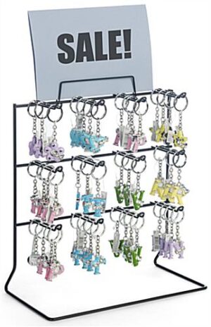Counter Rack w/ Sign Holder, 3 Tiers, (12) 3″ Hooks – Black
