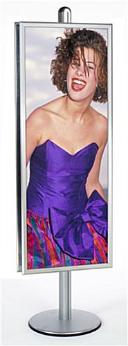 22 x 56 Poster Stand, Snap Open, 2-Sided, 6 Feet Tall, Round Base – Silver