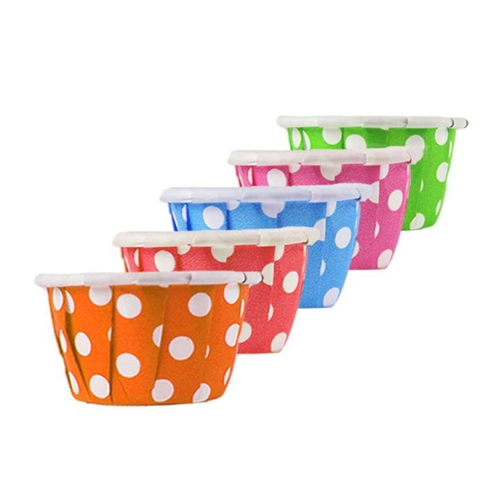 0.5 oz Assorted Dotted Paper Souffle / Portion Cup (Blue/Green/Pink/Orange/Red) – 1 case (5000 piece)