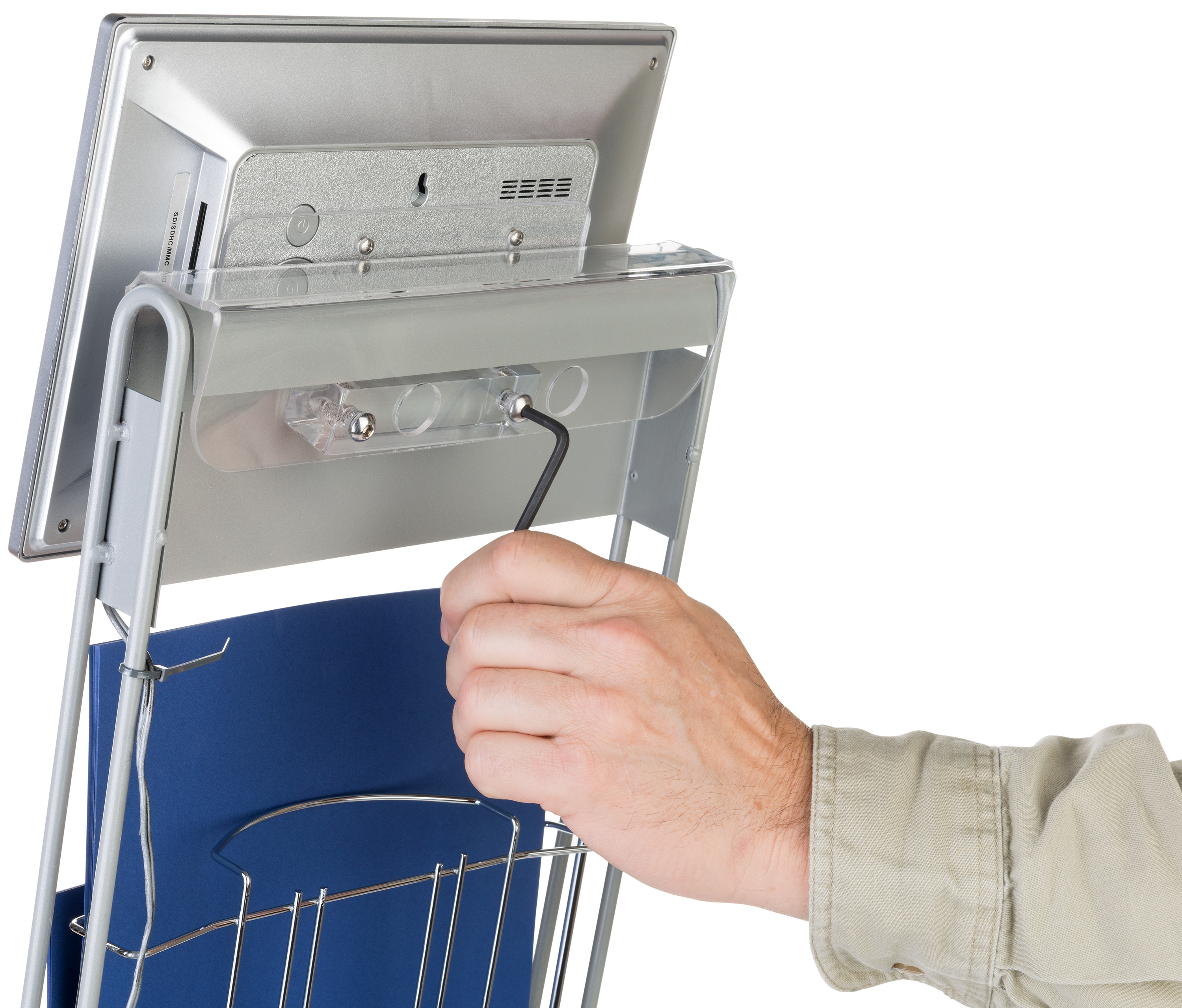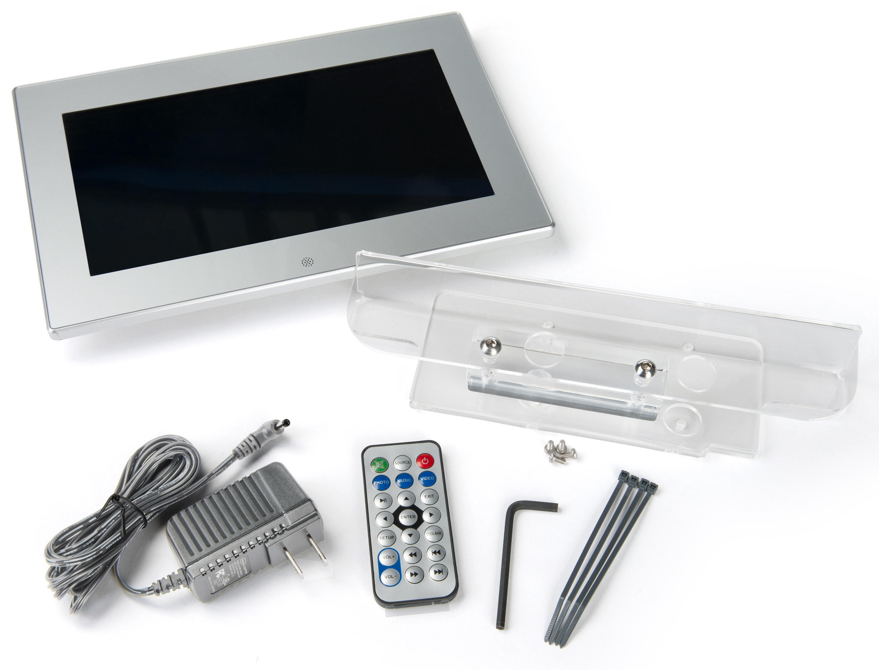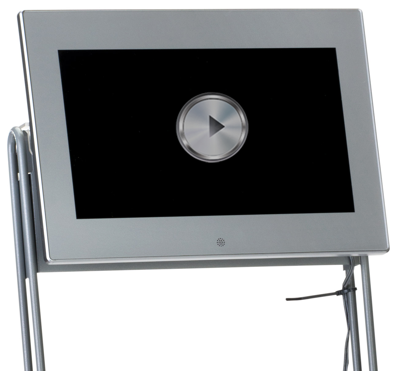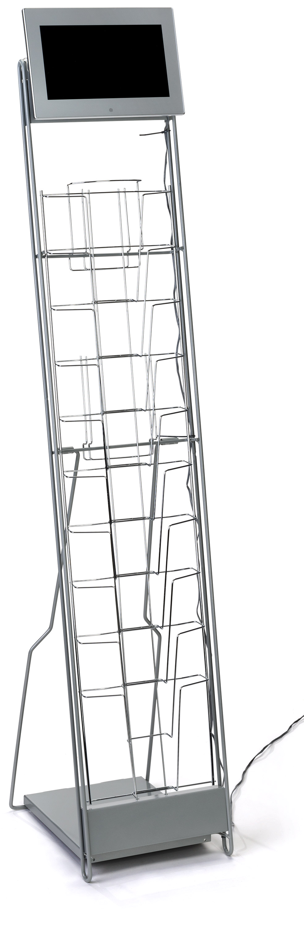 Securely attaching to the header of the literature stand, this 10.1” digital sign for DGNCYBRBLK takes an existing trade show tool and enhances with multimedia capabilities. Each LCD screen supports plug-and-play features for high-resolution video, audio, and image files through a USB and mini HDMI port. At 1024×600 resolution, this digital sign for DGNCYBRBLK uses vivid media to engage customers and improve literature distribution. setup is simple, as all hardware is included to attach the advertising screen to the acrylic bracket, then mount on the magazine stand with security screws to help prevent tampering. Once installed, use the remote to access and control your media, whether it be a high-resolution video or an image slideshow with background music. The multimedia display can read files from an SD card or the included USB drive or play directly from another source via HDMI or 3.5mm AV-in cable. This digital sign is a unique and effective way to advertise at trade shows and realtor events, helping to encourage customer engagement and magazine distribution.