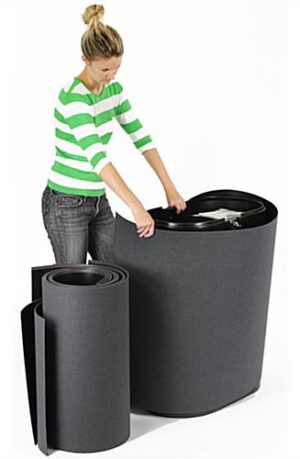 Setup of these exhibit displays is fast and easy. Simply raise the frame from the ground and magnetic connectors will automatically snap the pieces into place. Black fabric panels then attach to magnetic channels bars along the frame for a seamless look. We sell these hook-and-loop exhibit displays with two halogen spotlights and a molded, hard plastic travel case. This case features built-in wheels, safety locks, and even converts into a functional display counter. A black hook-and-loop wrap-around fabric panel and laminate countertop are included as part of the conversion kit. Each travel case also features a foam-padded compartment to keep your lights from breaking.