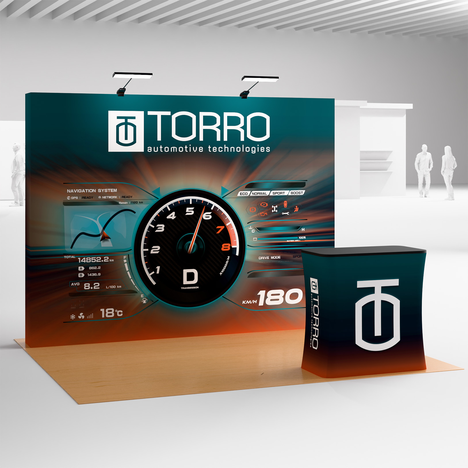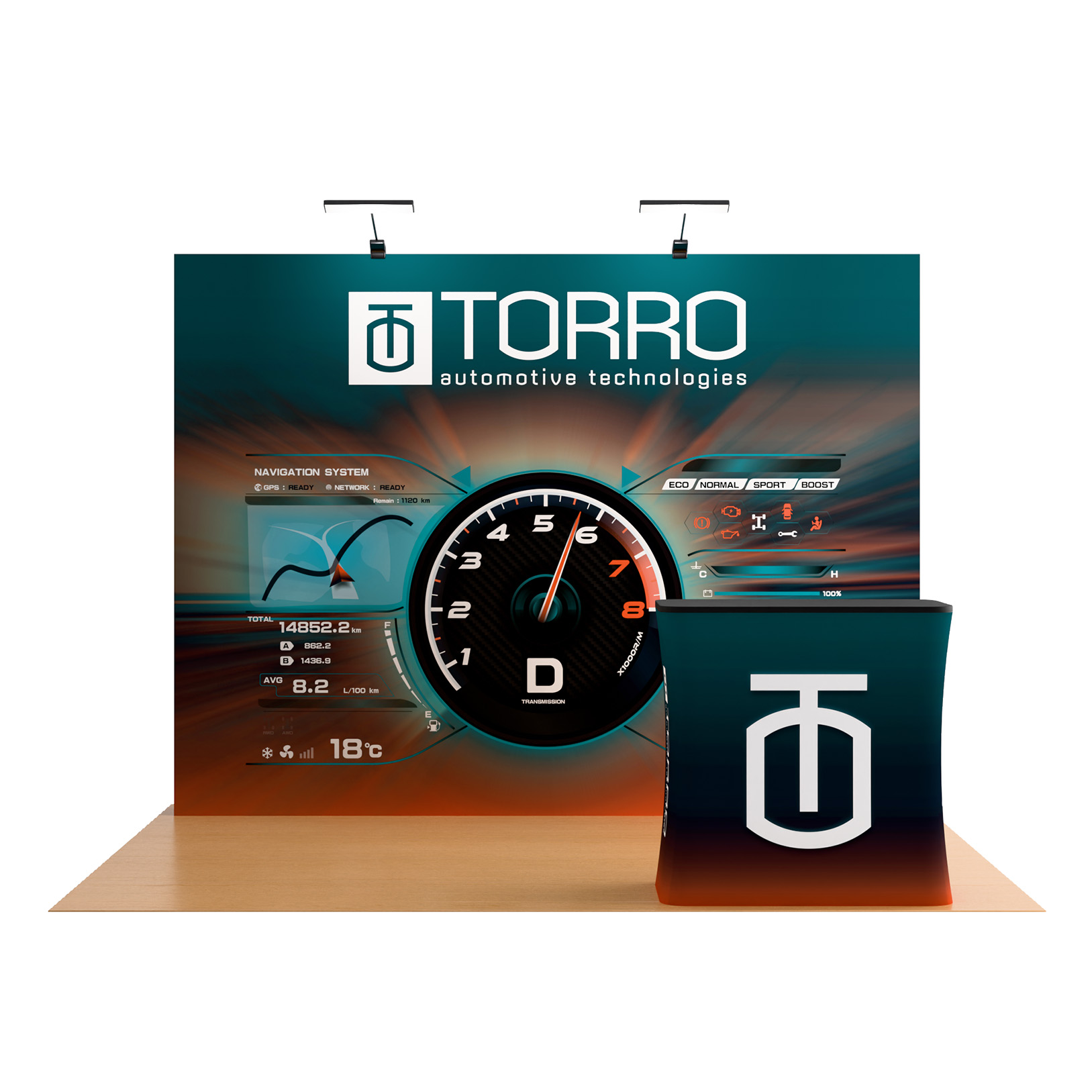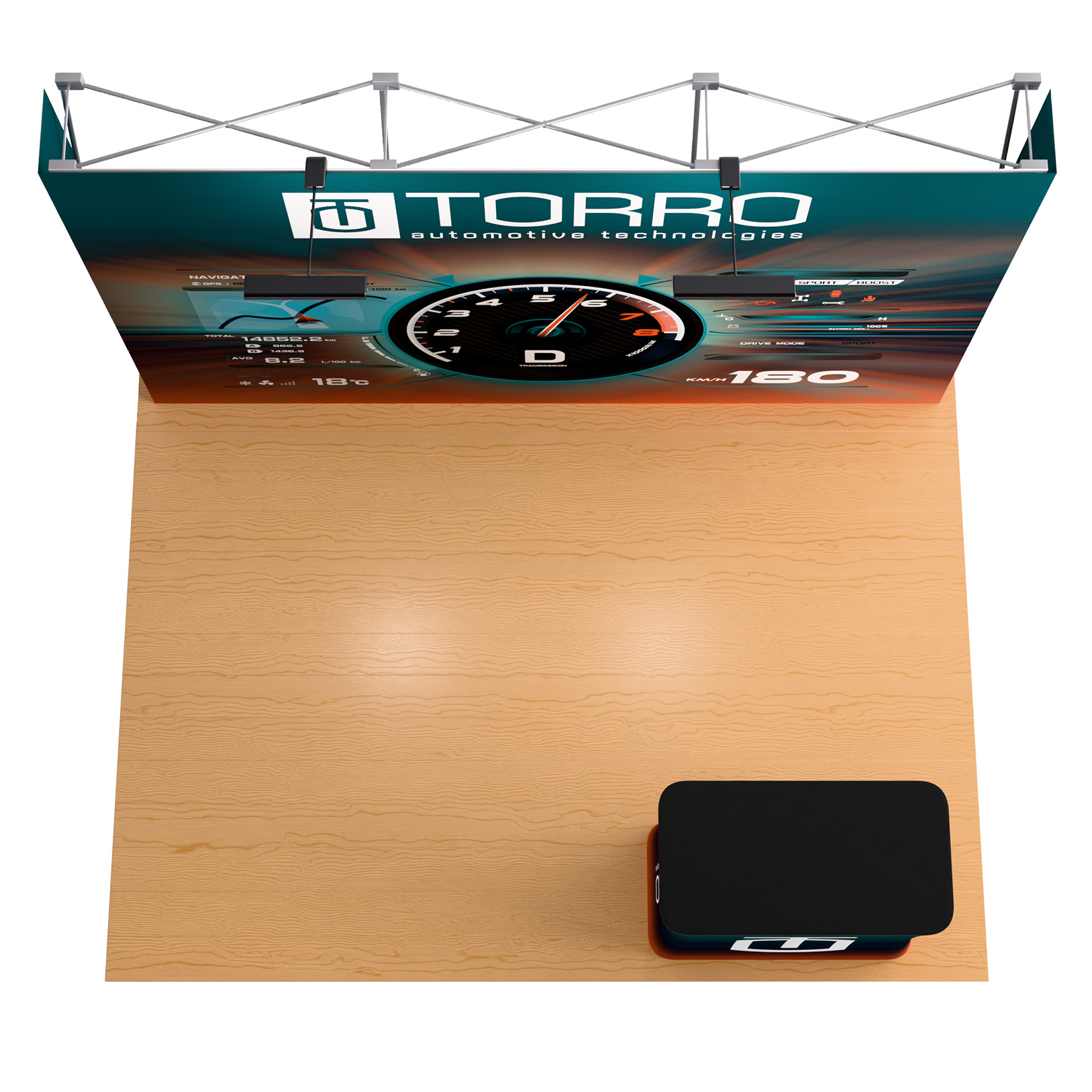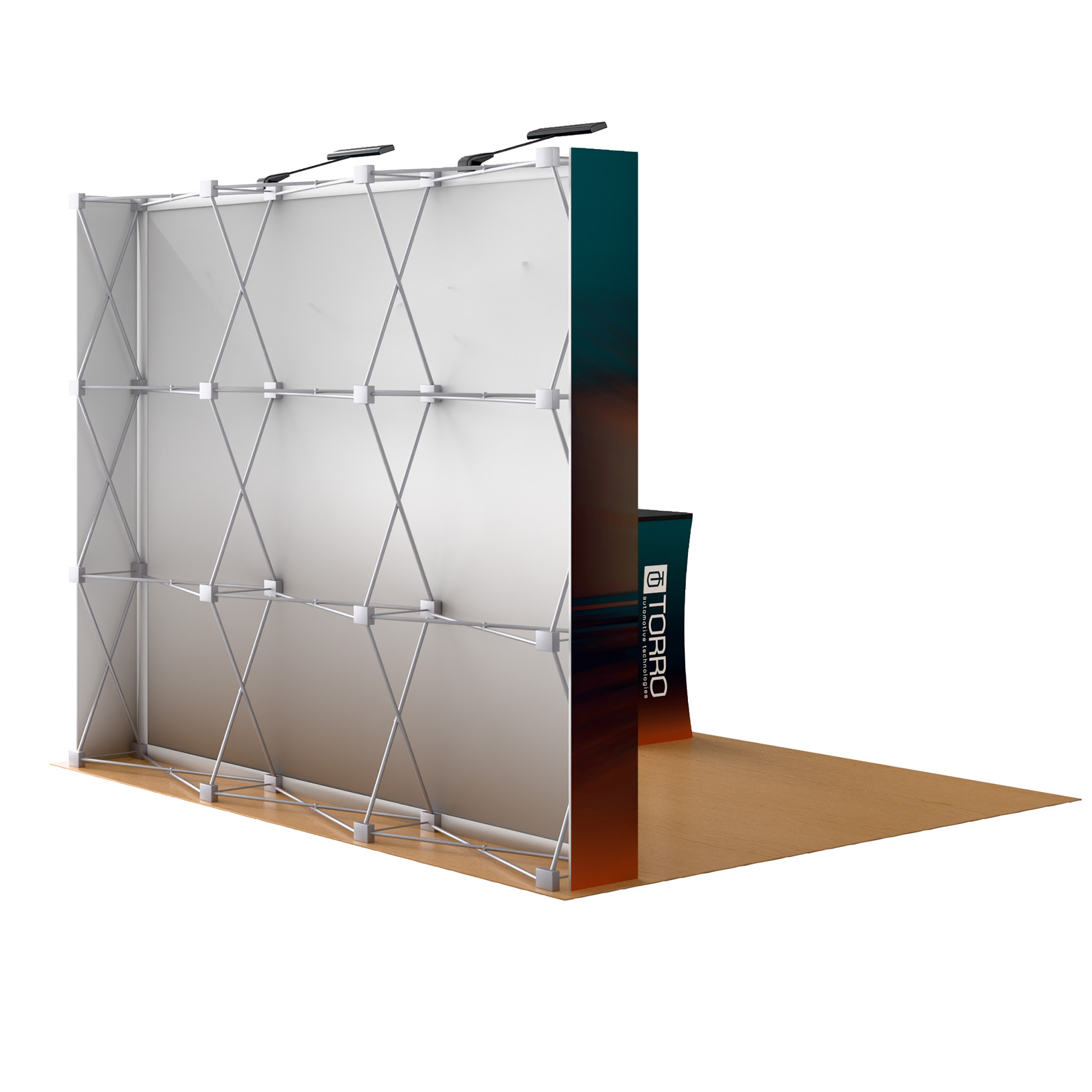Includes: Hard Shipping Case, 10′ Pop-Up Backwall, 2 LED Spotlights, 2 Custom Printed Graphic Panels