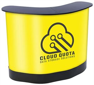 | Custom Printed Counter/Case | 49.0″W x 38.0″H x 23.6″D | N/A; Converts to Mobile Case | PET Plastic; Adhesive Vinyl | Black; Gray; Custom | 40.5 lbs. |
