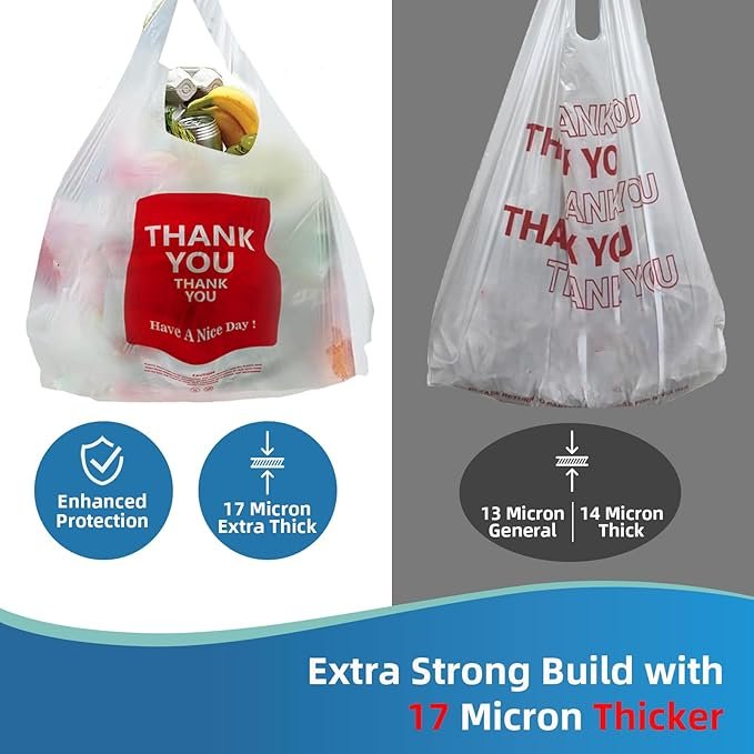 - Sturdy Structure: 17MIC Thicker than regular grocery store bags for added durability. Whether for retail goods or food packaging, you can trust these bags to stay intact without tearing