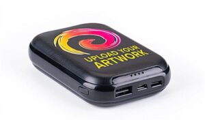 Our portable cell phone power bank, with free custom logo printing, is a branded backup charger that’s great as a trade show giveaway. This budget-friendly corporate gift is powered by a 10,000 mAh high-capacity lithium-polymer battery with USB, micro-USB, and Type-C ports. The portable cell phone power bank is great for sales events, company parties, and business conferences. Our promotional rechargeable backup battery comes in a gift box with a transparent front to display your custom messaging while in the box. This corporate gift charger features multiple ports, overcharge protection, and 5V/3A rapid charging. The FCC certified custom portable cell phone power bank features four indicator lights and a USB cable for charging.