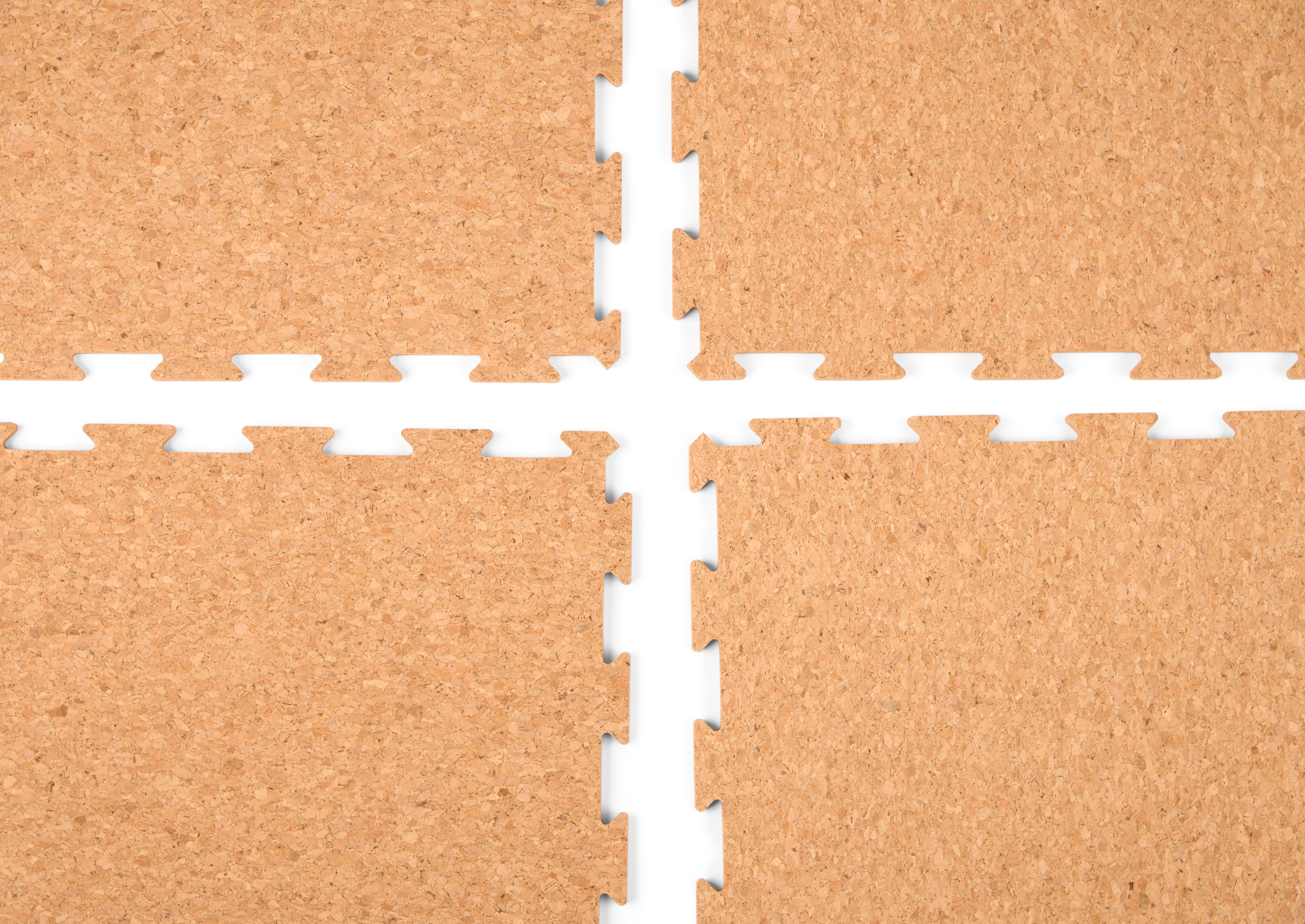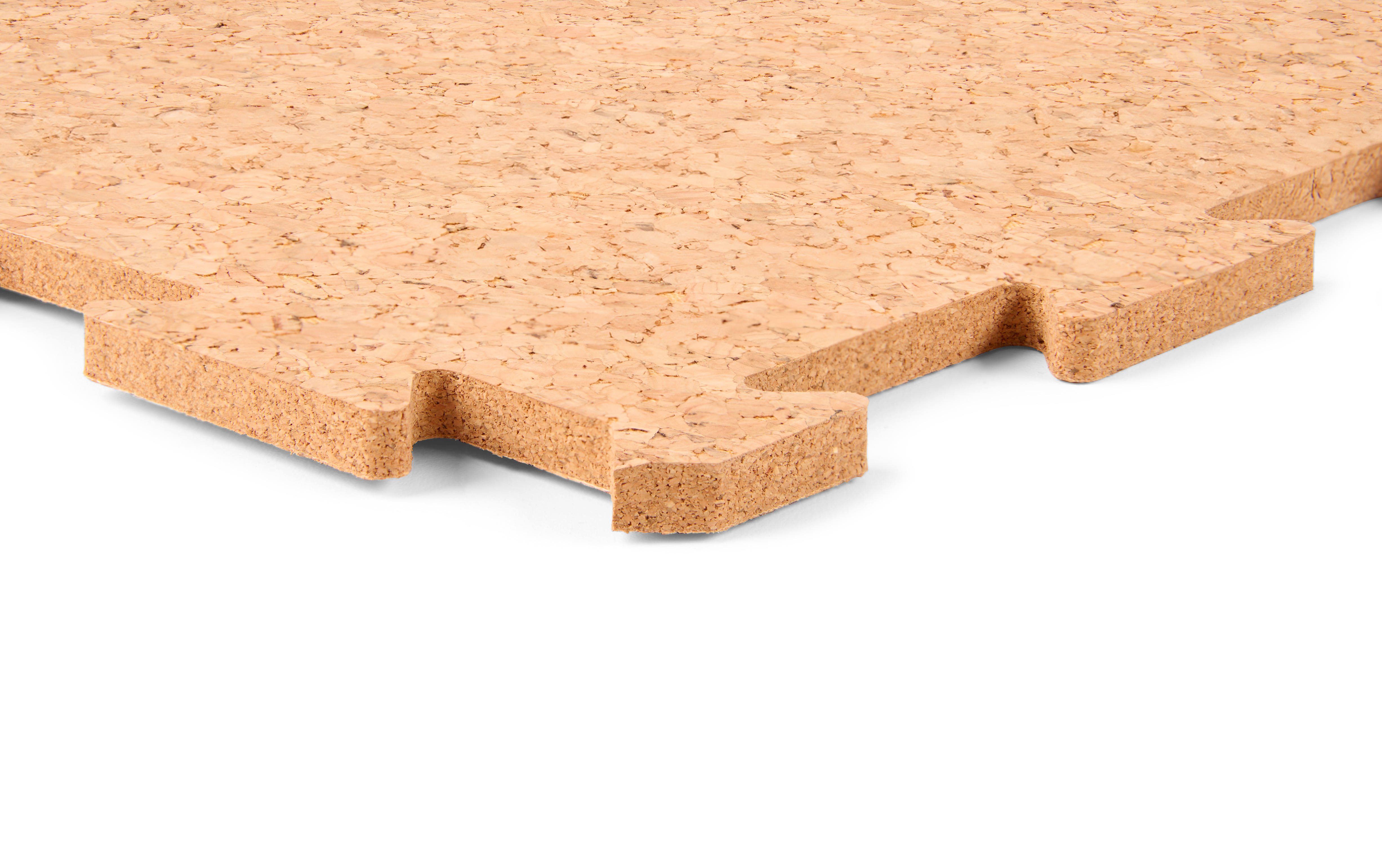 10’x10’ Interlocking Cork Floor Tiles with Edge Strips – Natural