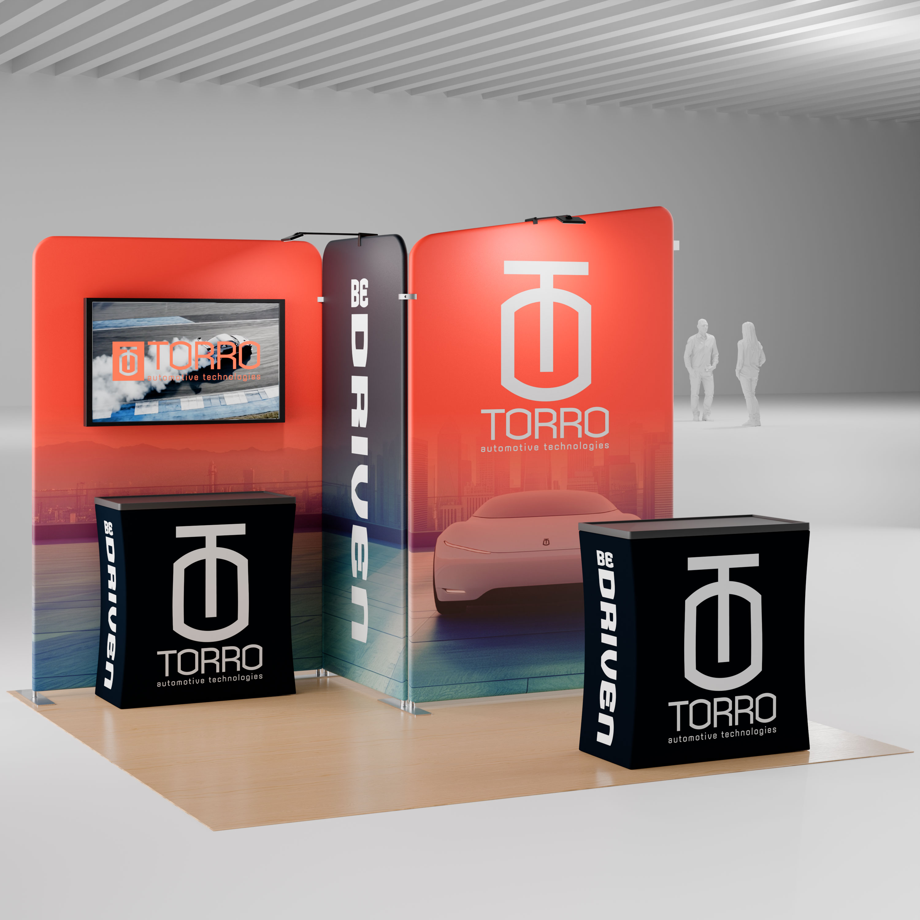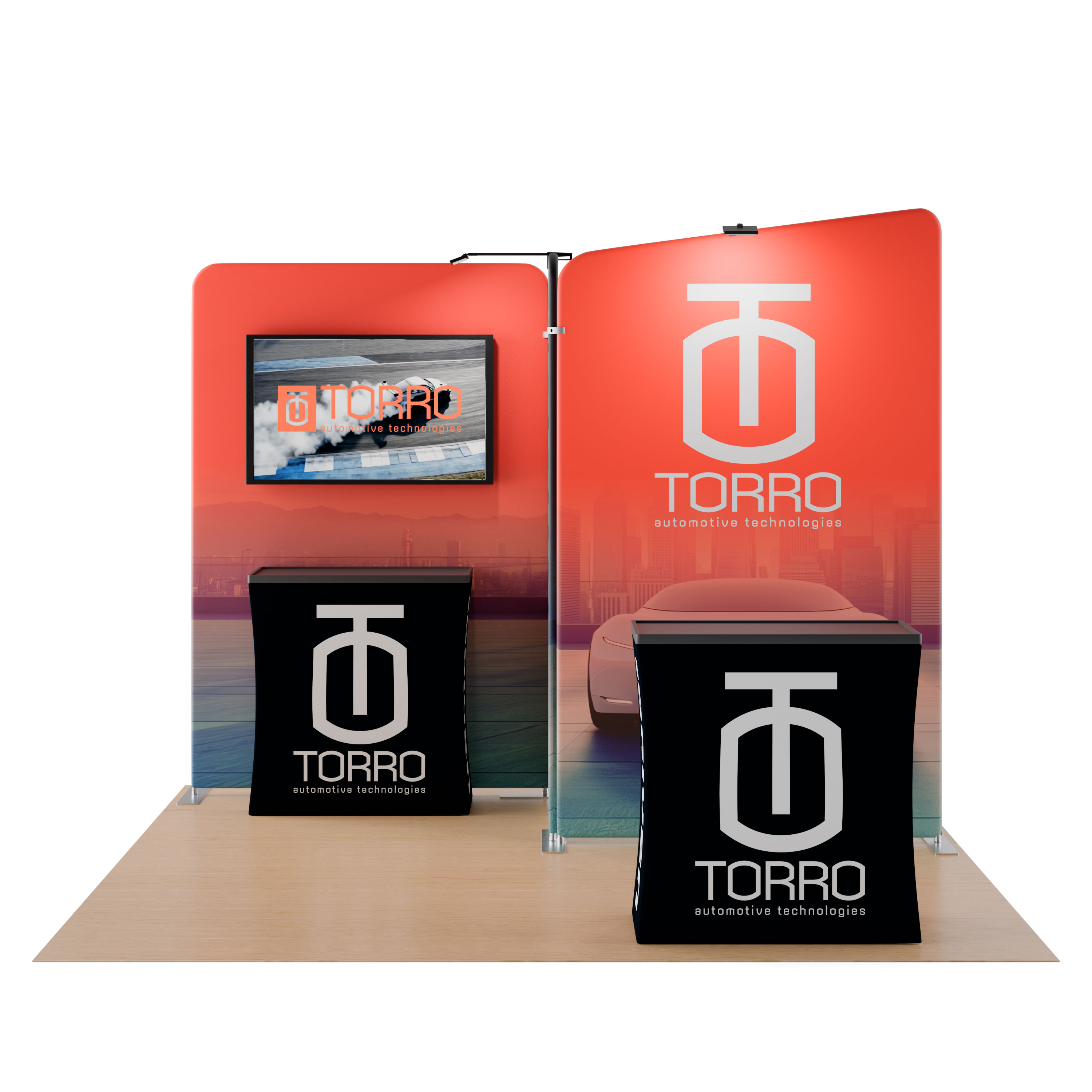 10×10 Modular Trade Show Booth Kit w/ Custom Graphics, Monitor Mount, Counters