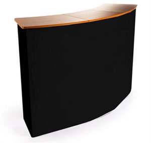 This trade show booth design is perfect for use at tradeshows, exhibitions, and conventions. Different items are included so that your company can create an effective presentation to attract potential clients. The trade show booth design incorporates (2) black truss TV stands that each support up to a 50″ television, weighing less than 80 lbs. Each stand assembles with virtually no tools, as the rods are self-screwing. The trade show booth design uses a pop-up counter display which can be personalized with full-color graphics sold separately. This counter sets up quickly and has a large tabletop for placing items. The tradeshow display, trade show booth design has hook and loop receptive material to place various accessories such as literature holders and graphic mounts. Within the counter are (3) smaller shelves for placing additional merchandise.