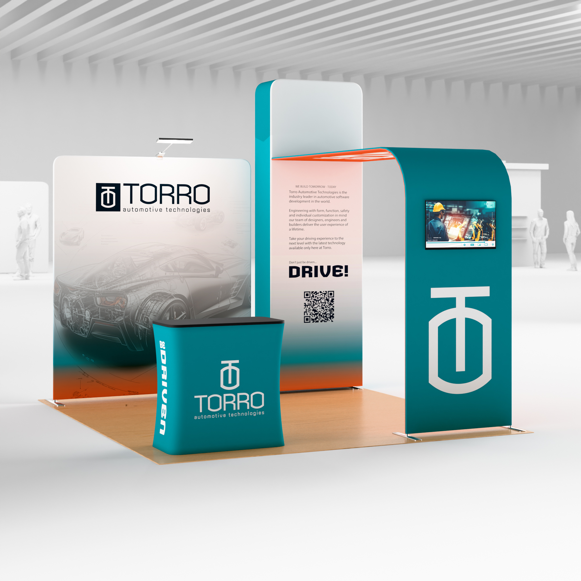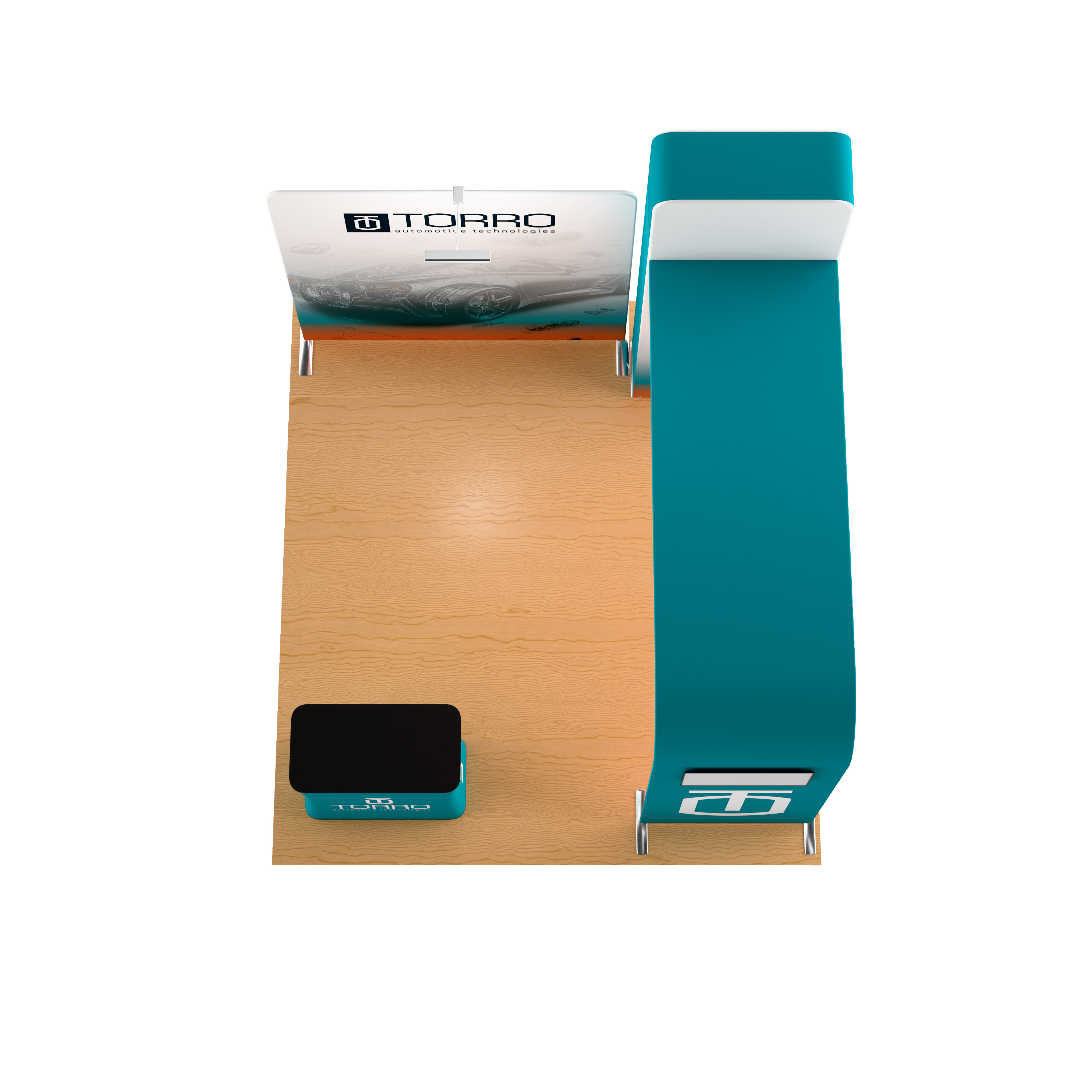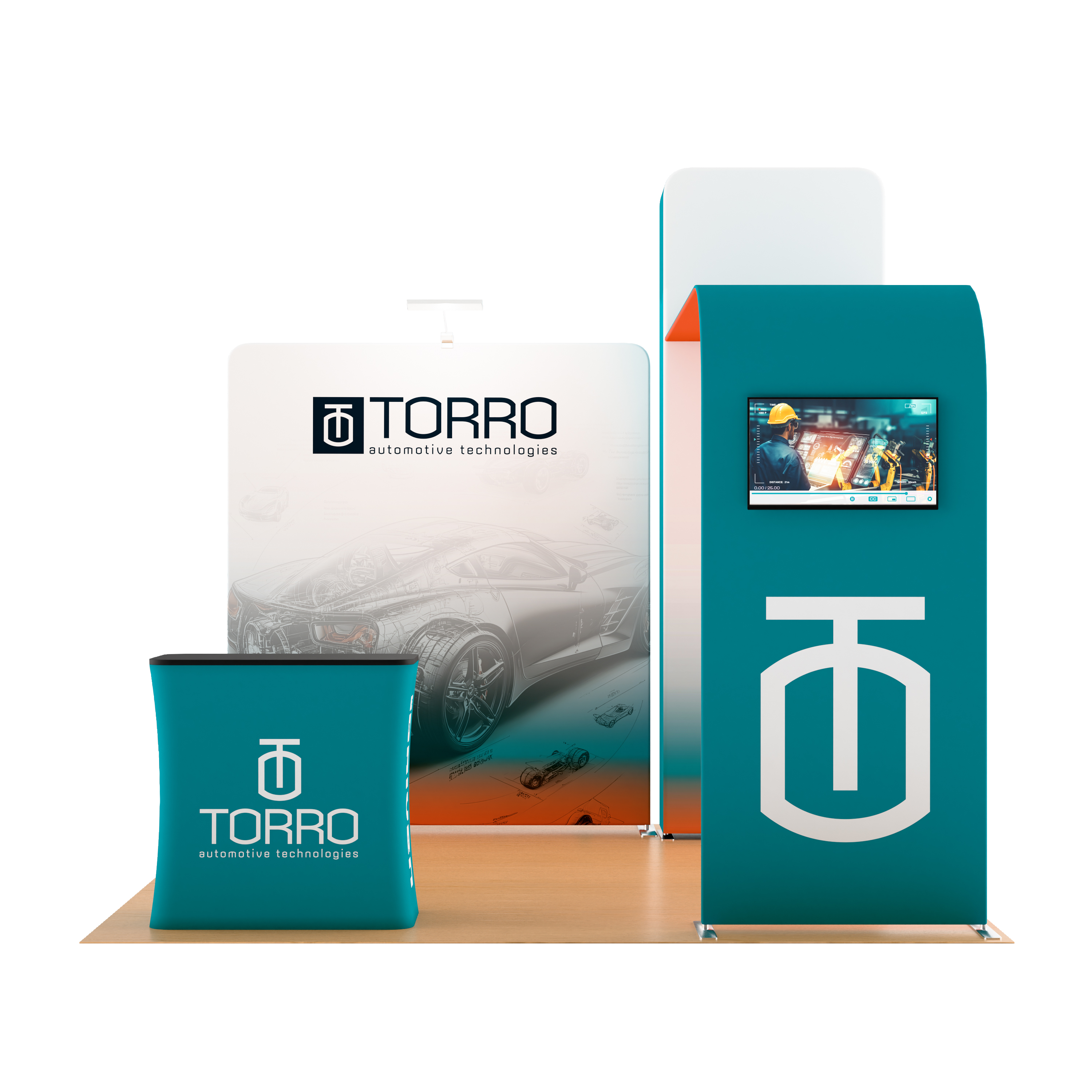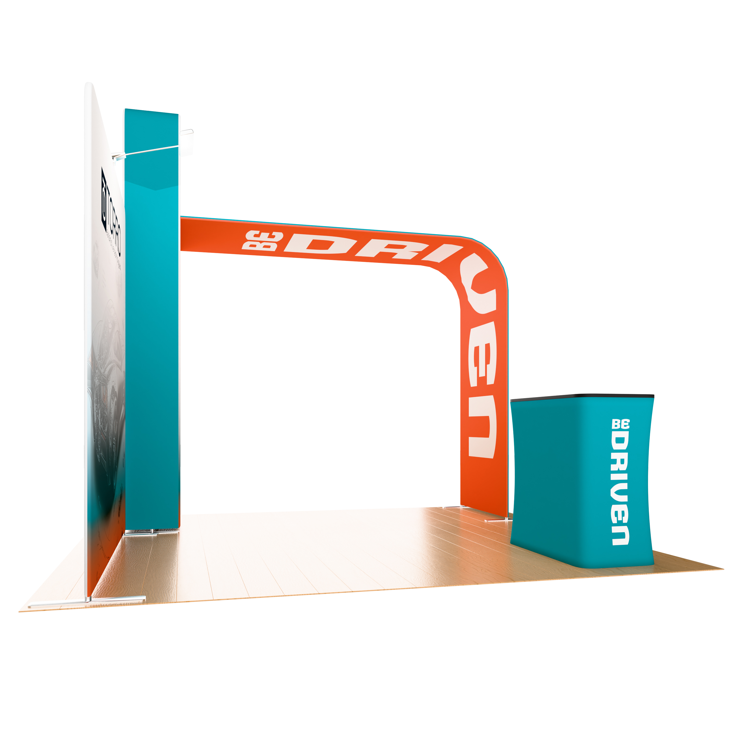 10×10 Trade Show Booth w/ Custom Printing, Arch Monitor Stand, Counter – Full Color