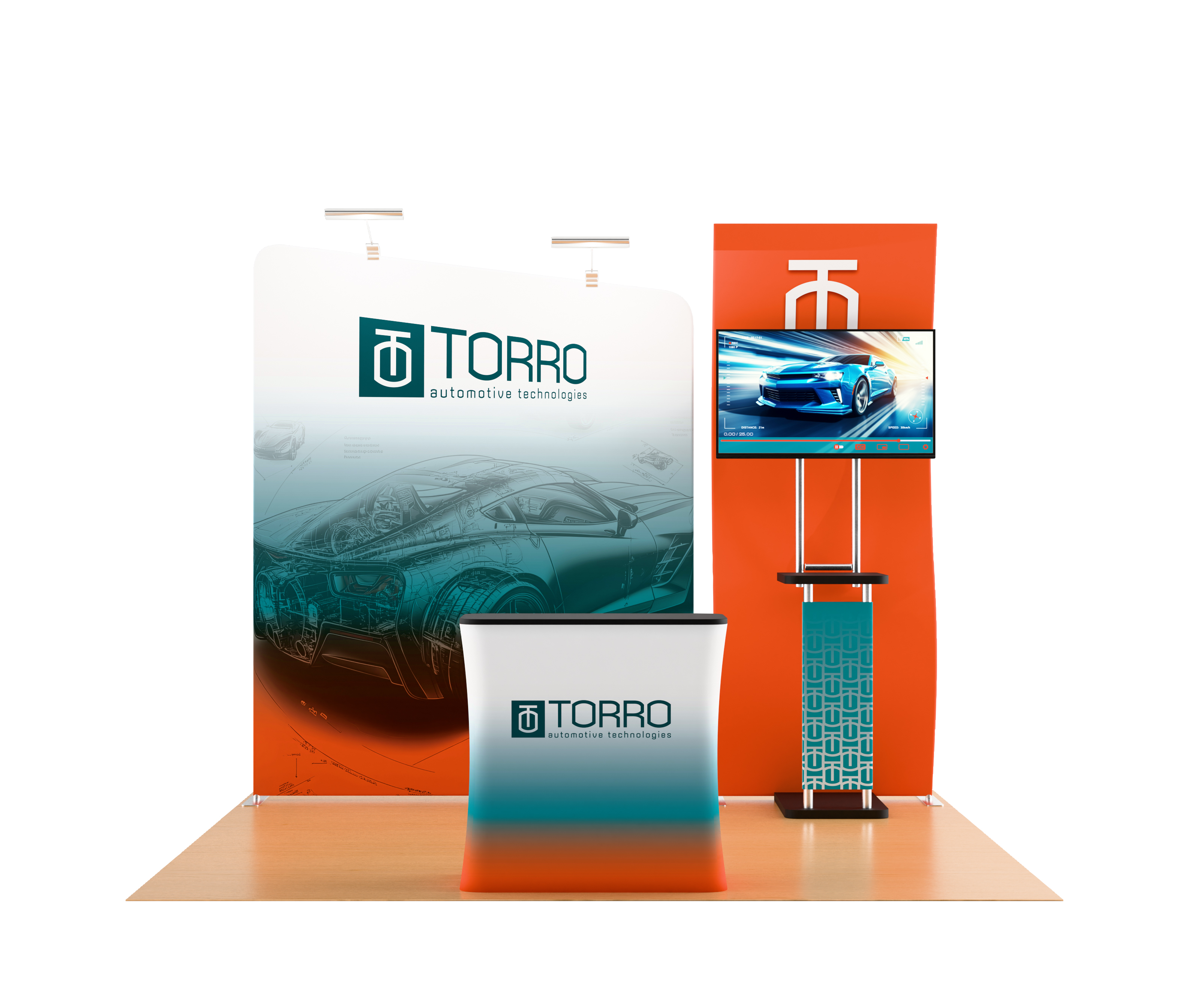 10×10 Trade Show Booth w/ Custom Printing, Monitor Mount, Counter – Full Color