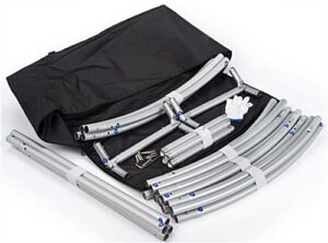 This modern exhibit display furniture set combines custom printing, visitor comfort, and an uncomplicated modular design to create a professional trade show showroom that will impress clients. Combining a variety of large format graphics on 2 moon-shaped backdrops, 8’ tower, and a portable counter, the kit also includes a table and 2 chairs to provide seating and offer a spot to place marketing materials. Different graphics can be used on each component of the kit. At nearly 10’ wide, each back wall for the configurable exhibit display furniture set offers impressive tension fabric artwork that will help improve brand awareness while maximizing advertising space within a 20’ showroom. To ensure that your business will stand out, an 8’ tall tower is included as part of this kit, with 4-sided custom printing so that your logo or slogan will be seen by passing visitors from every angle. Set the portable counter near your booth entrance to greet clients with professional large format graphics and distribute marketing materials on top for them to take as they leave, with the option to store additional literature within the frame. Impromptu meetings and consultations will be convenient to hold within your trade show space, as the height adjustable table and chairs can be set-up to offer comfort and a quieter spot to discuss business, while the collapsible literature holder allows you to easily present and distribute brochures and catalogues. The modular kit is uncomplicated to assemble and place in the desired configuration, and break-down is just as easy, with carrying bags provided for the walls, tower, counter, and tension fabric to transport and store. Ideal for 20’ booths, this display furniture set is an all-in-one set-up to minimize the stress of trade shows and maximize brand awareness so you focus on closing deals and building customer relationships.