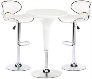 24” Round Cocktail Table, Height Adjustable, 360 Degree Swivel – White