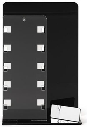 This standing optical lens display is made of 6mm thick black and clear acrylic and holds up to five pairs of sunglasses and eyewear. Featuring a compact countertop design, this unit is excellent for retail stores, pop-up stands, eye doctor offices, and more as a way to showcase your top-selling designs and styles. The extra space at the top also allows for the perfect space for sale or promotioinal signage. Each acrylic standing optical lens display has a knock-down design that requires very minimal assembly, making it great for street vendors or trade shows. This eyewear tower is also an excellent way to capture those impulse consumer buys at the check out in gas stations, department stores, and retail shops. A small 4.5″ W x 2″ H mirror is also featured on this unit for an added convenience when customers are trying on sunglasses. This modern countertop standing optical lens display will make it easy to showcase your best-selling frame designs and promote new eyewear collections throughout the year!