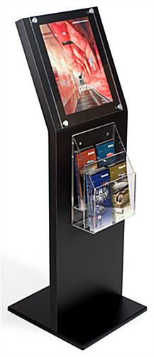 This magazine stand, also known as a freestanding literature display, is made of thick MDF with a black laminate. The sign stand accepts 11″ x 14″ graphics held in place by friction. Simply unscrew the top caps to insert or switch your graphics. This magazine stand, literature rack comes unassembled but takes only minutes to set up!