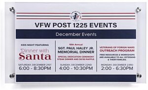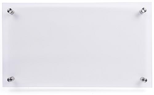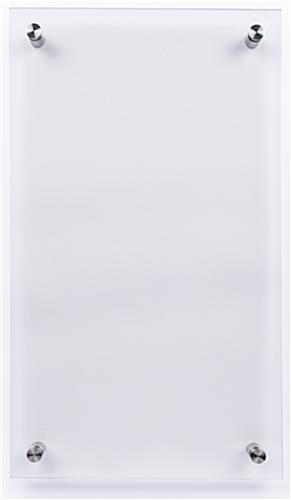 Our 11×17 DIY office wall sign is made from eco-friendly clear polycarbonate and stainless steel standoffs for a sustainable and long-lasting design. This door signage is perfect for corporate office assignments, advertising materials, awards, or professional photography. Each DIY office wall sign includes four standoffs for easy mounting in any space. 11″ x 17″ frame is a common size allowing you to print updated signage from the convenience of your home or business. This clear door frame will make it easy to present your marketing and business materials professionally. Our eco-friendly DIY office sign is a sustainable and stylish signage option for your business or personal needs!
