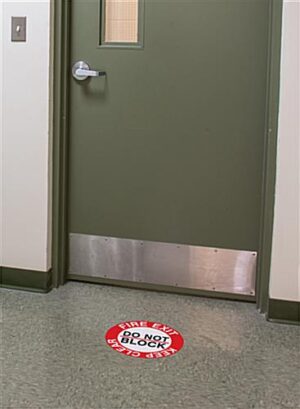 This fire safety exit sticker is essential workplace signage, warning employees against unsafe practices and acting as a guide during an evacuation. Each vinyl decal can be placed on a variety of flooring surfaces, such as concrete, wood, stone, and more for the ideal placement. The 12” x 12” exit sticker is easy to clean and withstands months of foot traffic, making this ideal for use as warning workplace signage to guide employees or customers while helping to ensure the space stays clear in case of an evacuation.