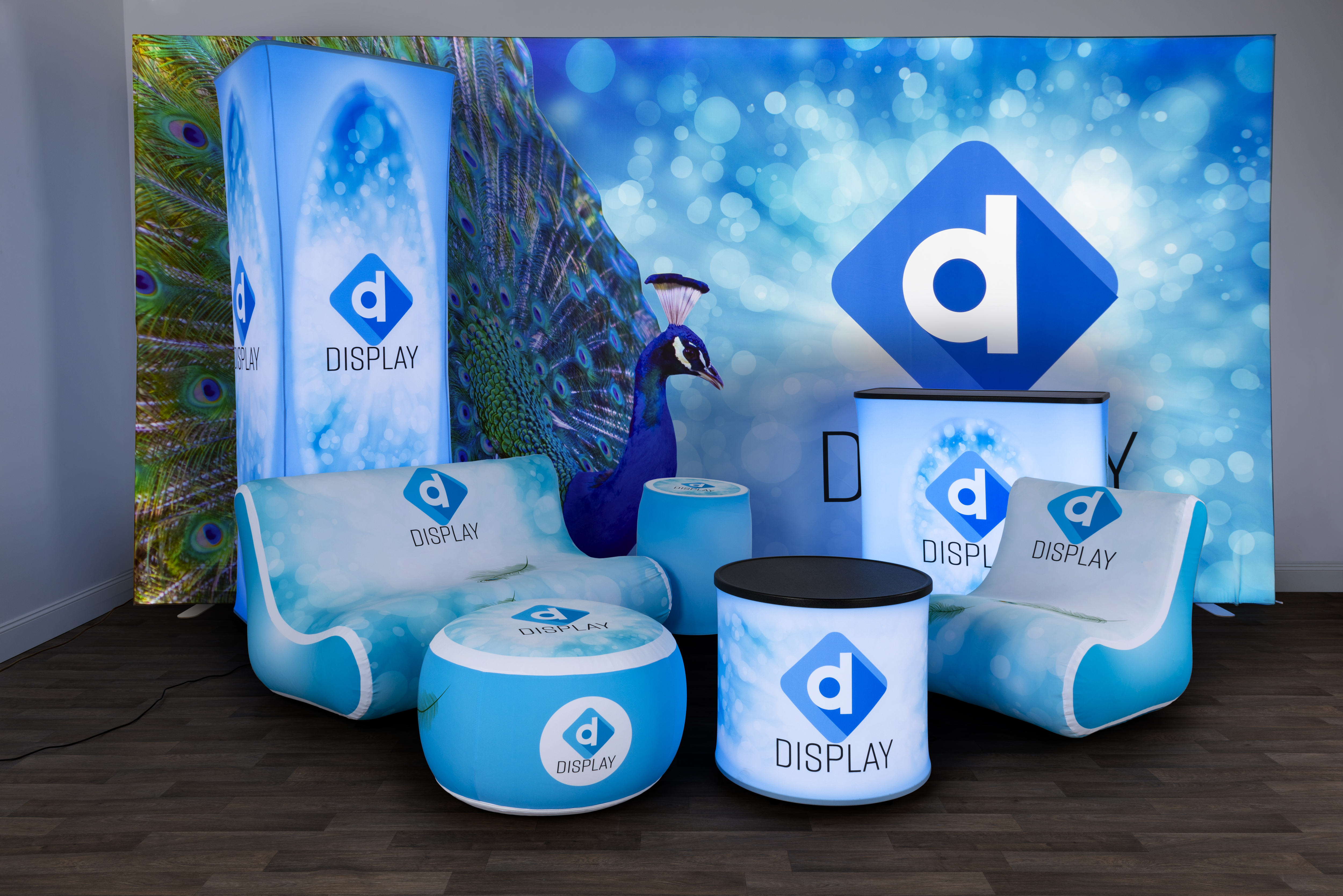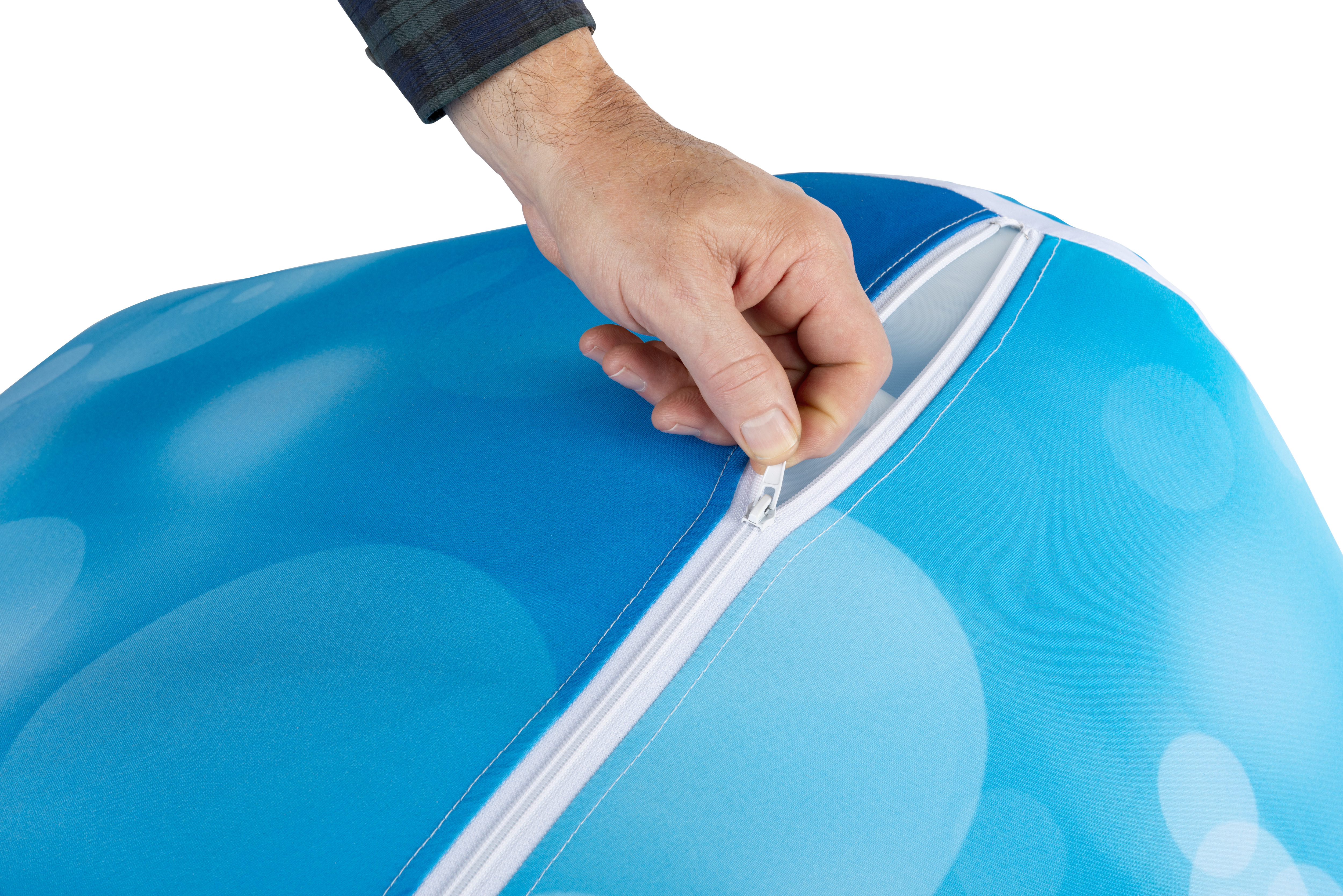 This branded inflatable sofa turns your trade show booth into a portable seating area that’s easy to set up, breakdown, and travel to and from events. The lightweight design and quick-deflate plug add convenience and versatility. Thanks to a custom printed polyester slipcover, this multipurpose branded inflatable sofa provides comfort as well as a unique advertising opportunity for your business. Arrange your own modular lounge décor set by mixing and matching this blow-up couch with similarly-styled ottomans and chairs. The slipcovers can be swapped out easily for a new event or to showcase a new product logo. This branded inflatable sofa lets your guests have a moment of comfort and relaxation all while acting as an eye-catching display piece for your business.