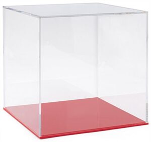 This 12″ square red acrylic display base for our clear lift-off cube will bring some fun color to your favorite exhibit case. The perimeter of the square bottom has an indent to help hold the box shaped lift-off cover in place. You will love having different color options avalible to keep your exhibits looking new and fresh at all times.
