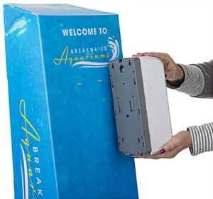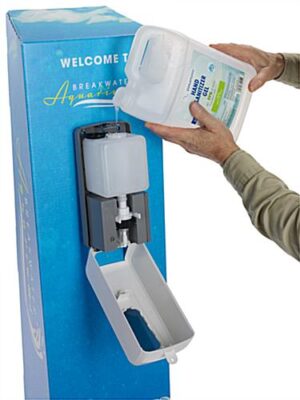 This custom cardboard sanitizer floor dispenser is the perfect solution when you need a fast and temporary hygiene station. What sets this station apart from others is it’s portable, disposable, and provides retailers with a unique opportunity to advertise their branding message. Our 60″ custom cardboard sanitizer floor dispenser includes a battery-operated unit that automatically releases cleansing gel when a hand is placed underneath. The use of hygiene stations is becoming an essential part of public health awareness and a necessity for retail environments. Whether you are using this stand in grocery store entrances, doctor’s offices, or malls, this is the ideal way to advertise your business while helping to keep customers and patrons protected. This disposable cardboard sanitizer floor dispenser is an easy popup station that is portable can be repositioned quickly when the need arises. Updating your branding message is quick and easy with our FGTRIHSS1CP replacement graphics.