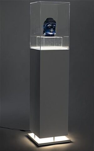 A white pedestal showcase with ambient lighting is the perfect choice for any museum, store, or any place you need to highlight items. This display case has a clear, lift-off acrylic enclosure to keep contents safe, and free of dust, dirt, and fingerprints. The contemporary design of this square pedestal showcase with ambient lighting features sleek lines and ample space. The acrylic top is LED illuminated giving you the option to accent your items. An included removable plug gives you the option to unplug it when not in use. The base of this display case has LED illuminated lights which beautifully spill out around it. It is easy to see why this pedestal showcase is perfect for your museum or space.