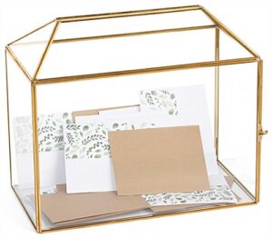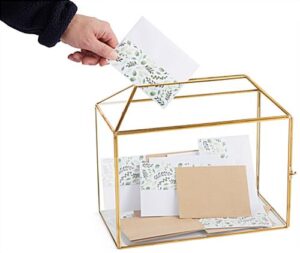 13 x 11 Glass Card Box w/ Side Panel Opening, Top Insert, Countertop – Gold