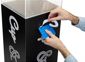 If you’re expecting a large turnout, rest assured that artwork or merchandise will be protected from fingerprints or damage behind the lift-off acrylic top.