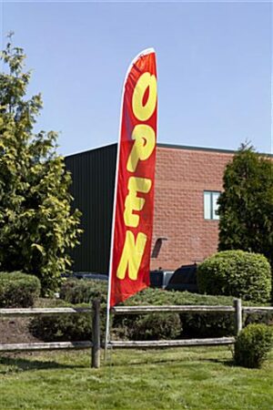 14′ Feather Flag & Ground Spike with Pre-printed OPEN Message – Red & Yellow