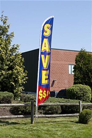 These message feather flags that grab attention advertise to potential customers! This sign display will help set businesses apart in a competitive market! These sale feather flags that include a 4 piece curved aluminum pole boast a stay open design. This message banner is economical for small businesses seeking more exposure. These promotional message feather flags, also known as advertising swoopers, are designed for outdoor installation. In addition to this message, there are also open swoopers! These message feather flags have a brightly colored print that is sure to get noticed! This advertising banner will inform customers of special promotions and ideally increase traffic in an establishment! This swooper banner has a stay open design that ensures the message is readable with or without wind.