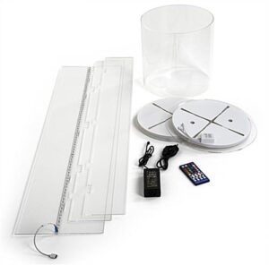 The acrylic and corrugated cardboard build is easy to assemble and lightweight, yet strong enough to hold a single item of up to 35lbs beneath the clear lift-off cylindrical top.