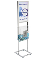 Poster Stand with Fundraising Box in Silver Chrome Finish