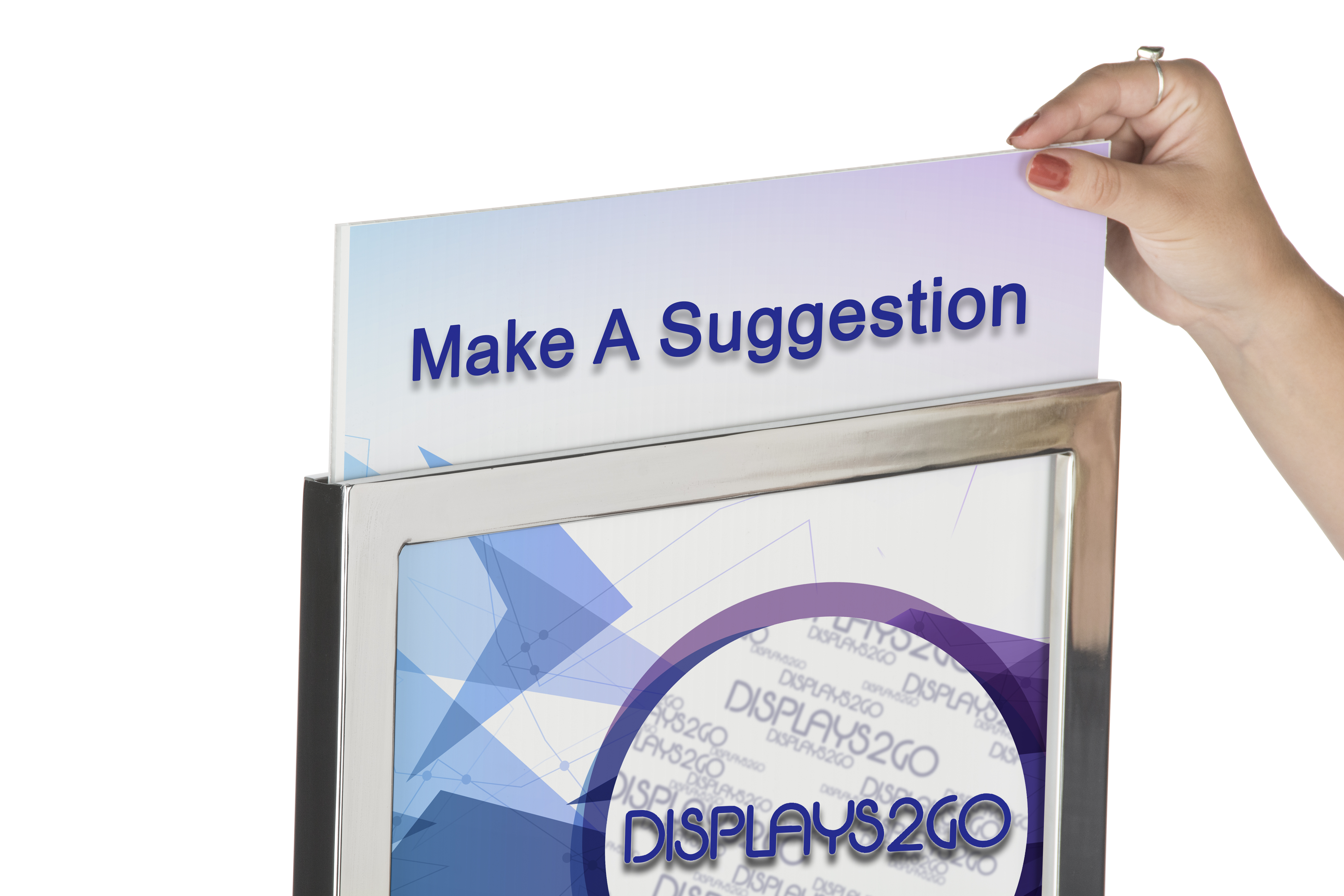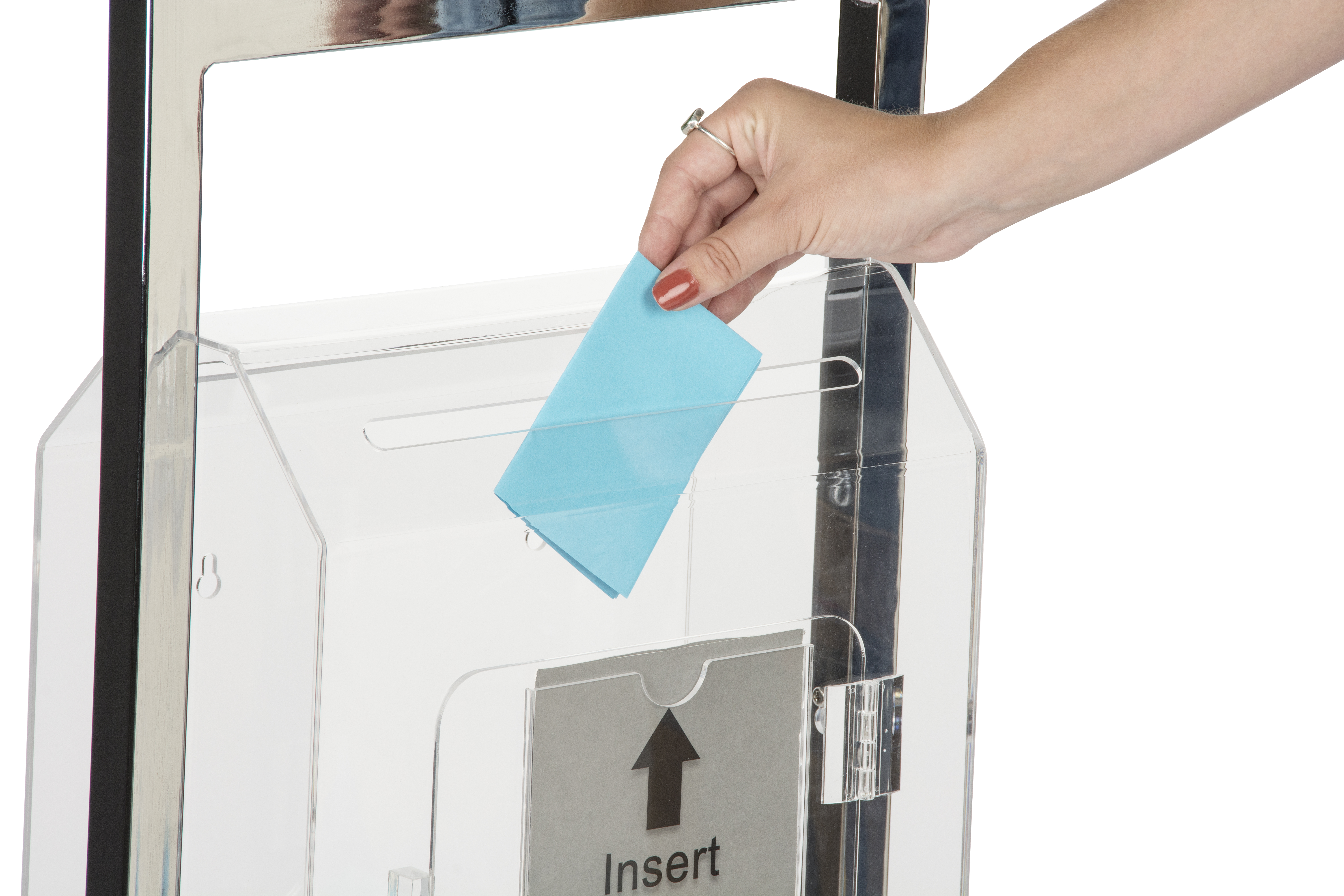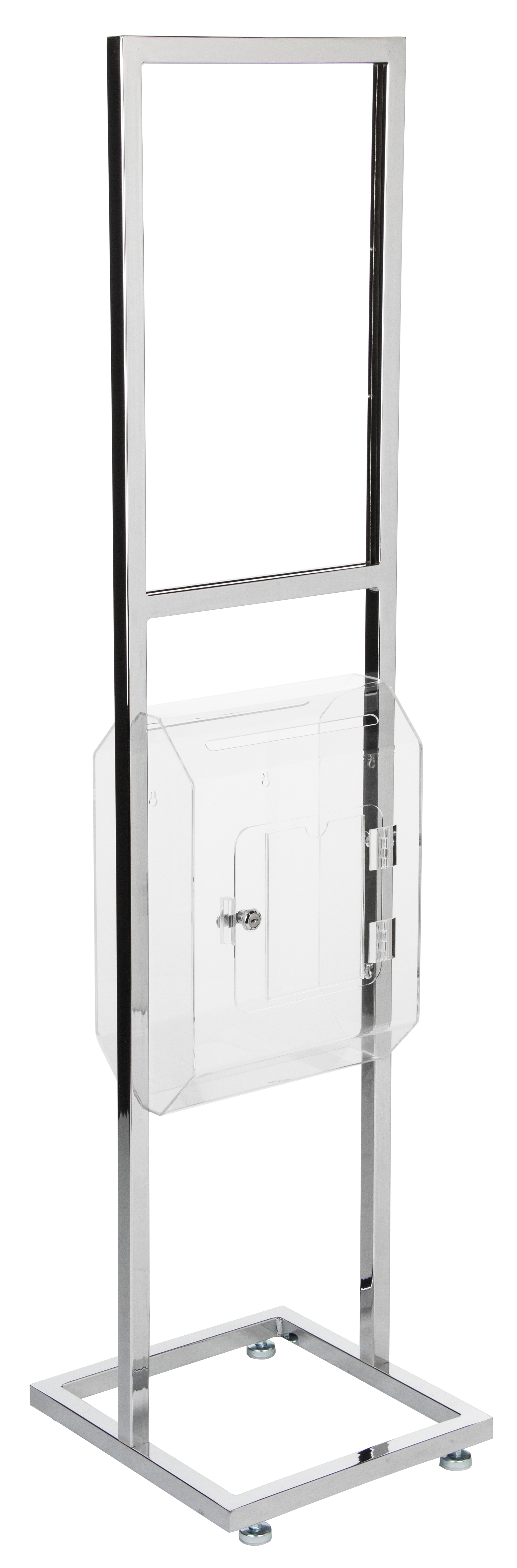 14″ x 22″ Floor Standing Sign Holder, Acrylic Ballot Box, Lockable – Chrome