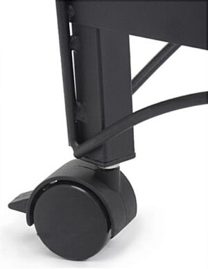 The retail fixture, metal POP display rack comes in a black finish for coordinating with any setting. The stand can also be made for stationary use, since the casters can be removed easily. This metal POP display rack that has (3) shelves can hold numerous products at one time. The fixture’s shelves are great for holding wine bottles, lotions, cleaning materials, seasonal items, breads, and more. Each metal POP display rack comes with a removable sign holder. The print frame is 12-1/4″w x 6-1/8″h. This metal POP display rack is 53″ tall. Each merchandise stand takes just seconds to assemble and is ready for use almost right out of the box.