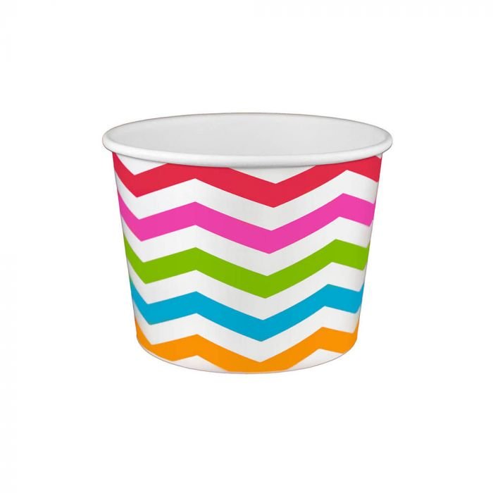 Welcome our new Chevron print! This new design comes in a variety of colors with a unique zig zag pattern. If you are looking to set your store apart and be creative, this is the perfect design for you. This 16-ounce size is great for serving several scoops of your favorite ice cream, or even some refreshing sorbet. Since our cups are made with double coated PE paper, they can withstand hot and cold foods. So, don’t let the frozen treats limit you. They will also work for hot soups or even fresh baked sweets. Really, these cups are so versatile.