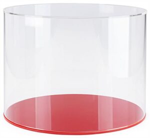 This DCR series 16″ diameter red lucite display base will add a subtle touch to this modern circular display vessel. The lift-off cover of the transparent case sits firmly on the indent along the edge of the base. The vibrant red DCR series 16″ diameter red lucite display base will add an exciting aspect to this plexiglass showcase!