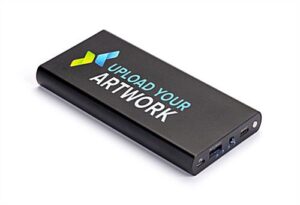 Our custom printed high capacity logo power bank provides 16000 mAh of battery power for phones, tablets, and Bluetooth accessories. Feature your message on this portable custom printed backup battery and create a promotional gift that builds customer loyalty. The high capacity logo power bank power bank has USB, micro-USB, and Type-C outputs, which are capable supplying up to 9 hours of charge. This promotional backup charger with custom printed graphics features a durable aluminum casing, a cable for charging, four battery indicator lights, and a user manual. The unit features overcharge protection to eliminate overheating. Complete with a non-branded gift box, the high capacity logo power bank with custom printed graphics is the perfect gifting solution for corporate events or trade show giveaways.