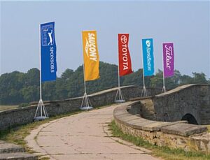 We are proud to offer flags for these GiantPole event flag systems. We have researched many different flag options and have come up with a solution that we feel is the best option for a reasonable price. These are real flags that will blow in the wind, not heavy vinyl banners.