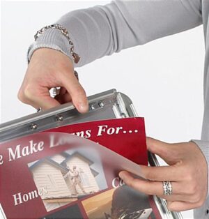 This sign stand is an example of elegance and practicality. At just under four feet tall, this poster display is the perfect height to catch the attention of passersby. This sign stand, also called a menu holder or poster frame, is omnipresent in retail stores, hotel lobbies and restaurants. Each fixture has an angled face to facilitate the viewing of the signage. This sign stand provides the perfect showcase for any graphic print. Restaurants and hotel lounges often use this poster display to greet guests with welcoming signage. This sign stand, also known as a graphic display, has a snap open frame for easy change-out graphics. The frame’s four sides lift up to allow the print to be replaced.