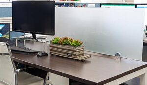 Glass Privacy Markerboard Partition with Permanent Desktop Mounting