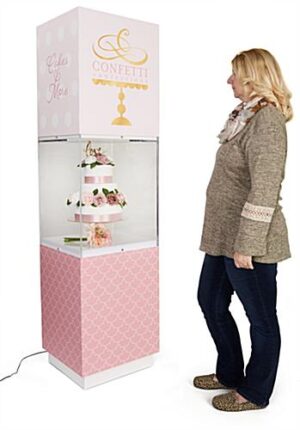 Bottom Lit Pedestal Display with Custom Graphics Complete With Locking Storage Area