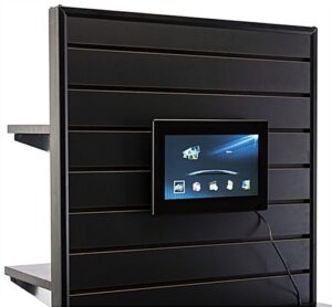 Slatwall Merchandiser with Digital Screen and Adjustable Shelves and Brackets